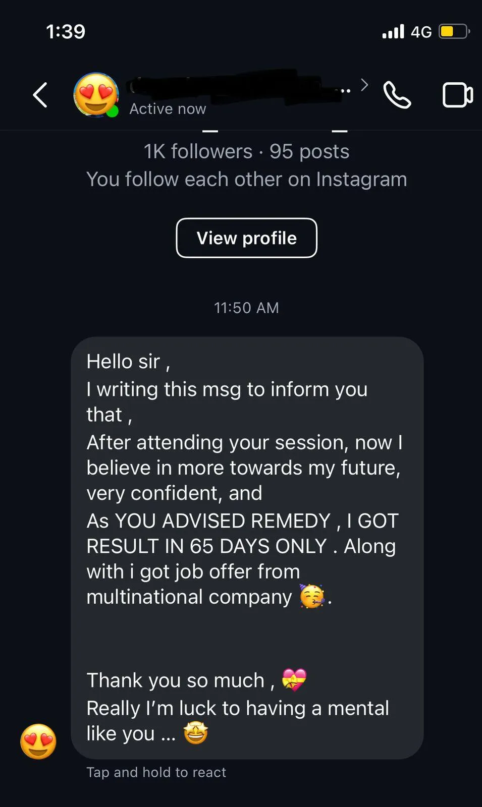 Even parents, Government job seekers, property dealers and much more people experienced positive outcome in their lives through my occult science modalities.